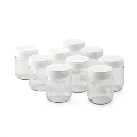 Complément idéal des yaourtières Lagrange (ref. 71538 et 71539), ces 9 pots de yaourts en verre sont personnalisables grâce au feutre effaçable fourni. Les couvercles des pots comportent une zone de marquage permettant d’indiquer la date de confection du yaourt, son parfum, etc