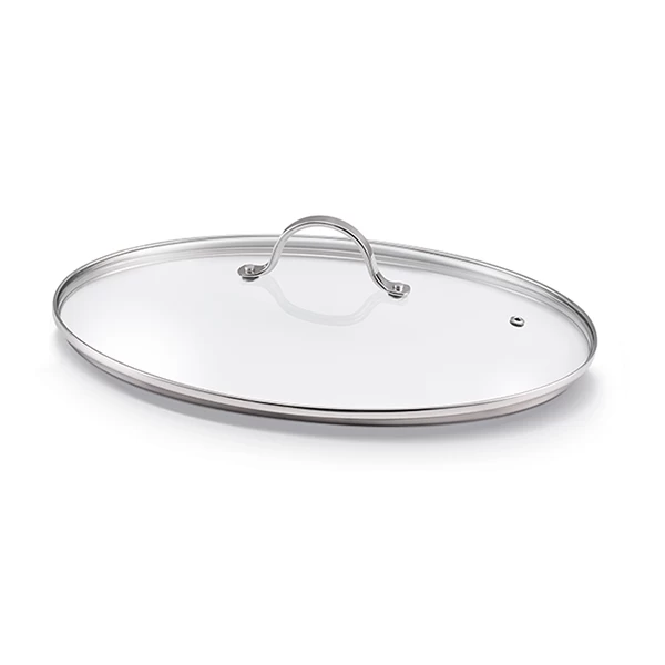 Conçu par l’enseigne de matériel de cuisine professionnel Beka, spécialiste des matériaux de haute qualité, ce couvercle de poêle à poisson ovale 37,5 x 25 cm est dimensionné pour couvrir la poêle à poissons ovale 37,5 x 25 cm. Fabriqué en verre résistant transparent pour vous permettre de surveiller la cuisson, le couvercle est cerclé d’acier inoxydable garanti 25 ans et doté d’un système anti-clapotement pour que la vapeur s’échappe. Au-dessus, vous disposez d’une poignée rivetée avec un arceau ergonomique, composé également d’acier inoxydable pour vous éviter de vous brûler en le soulevant.