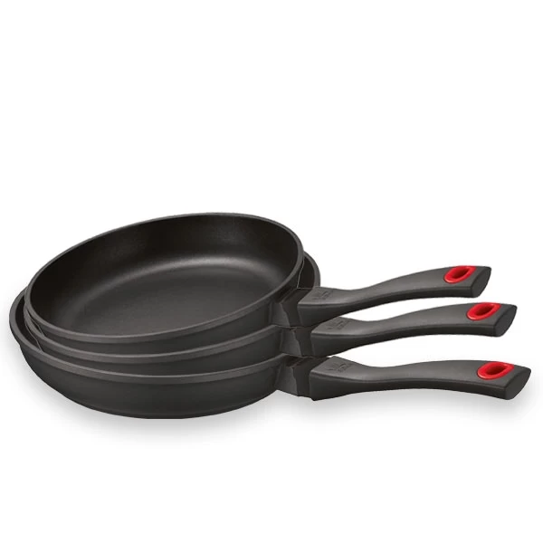 Faites en céramique, les poêles Beka Energy transmettent bien la chaleur et la diffuse uniformément grâce à leur revêtement Bekadur DualForce en fonte d’aluminium aux propriétés antiadhérentes. Vous pourrez ainsi cuire sans matières grasses vos plats pour une cuisine améliorée au niveau de la santé et des saveurs (dans la même optique, ces poêles sont garanties sans PFOA). Pour convenir à toutes vos recettes, trois tailles sont présentes dans ce lot : une poêle 20 cm, une poêle 24 cm et une poêle 28 cm.