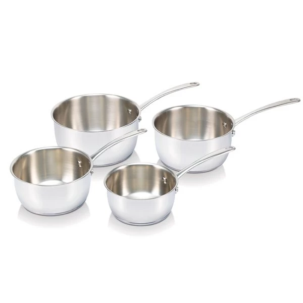 La série de 4 casseroles de 14 à 20 cm Belvia est composée d’un corps tout inox avec un extérieur brillant et un intérieur mat.