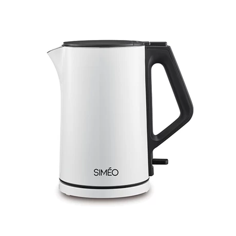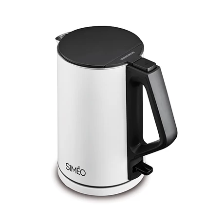 Sobre et élégante avec sa finition extérieure en plastique laqué blanc complétée par une poignée noire, la bouilloire électrique offre une capacité de 1,4 L et assure une manipulation confortable, sans risque d’échauffement grâce à ses parois froides. Sa conception avec une double paroi la rend plus silencieuse et l’eau est maintenue au chaud sans consommation d’énergie. Munie d’une cuve intérieure en inox avec un niveau gradué, la bouilloire électrique double parois chauffe rapidement une grande quantité d’eau sans aucun contact avec la partie plastique de l’appareil et s’arrête automatiquement à ébullition ; nul besoin de surveillance. L’eau de votre boisson chaude est servie sans résidus de calcaire grâce au bec verseur intégrant un filtre anti-impuretés.
