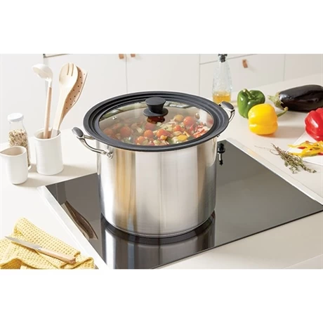 Son contour en silicone en escalier permet de s’adapter parfaitement aux différents diamètres en assurant une étanchéité parfaite. En verre, le couvercle permet de surveiller vos préparations facilement tout au long de la cuisson. Pratique, le bouton est en silicone pour pouvoir le saisir sans se brûler.