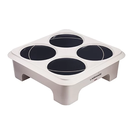 La crêpière creativ’ duo 139001 Lagrange propose un concept unique et breveté : en un clin d’œil, il est possible de changer les dimensions des crêpes grâce à son pochoir. La crêpière permet de faire des grandes crêpes de 28 cm de diamètre avec un marquage informatif et des petites crêpes grâce au pochoir en silicone qui sépare la plaque de cuisson en 4 mini crêpes de 13 cm de diamètre. Le pochoir rend les mini crêpes faciles à faire car le pochoir empêche la pâte de déborder. Le design de la crêpière est compact et fonctionnel. De forme carrée en coloris minéral, la crêpière permet un rangement optimisé et s’intègre à tous les intérieurs. Une louche adaptée à la taille des mini crêpes est incluse, ainsi qu’un râteau et une spatule en polyamide pour étaler la pâte et servir les crêpes.