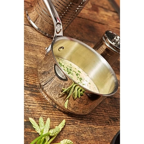 La Casserole Milady 20 cm fait partie de la gamme de poêles et casseroles DeBuyer Milady qui hérite du savoir faire de l’un des derniers fabricants français d’ustensiles de cuisine de qualité. La gamme Milady associe la robustesse d’une gamme professionnelle complémentée d’une finition polie brillante et d’un manche en fonte d’inox ergonomique. En inox, la casserole possède un fond sandwich.