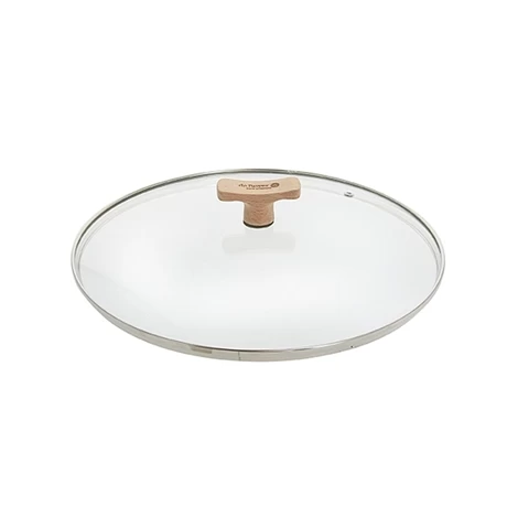 Résistant, ce couvercle est conçu en verre avec un bouton en bois de hêtre véritable, issu des forêts vosgiennes. Il assure une excellente préhension et permet de poser facilement le couvercle sur la table ou le plan de travail.