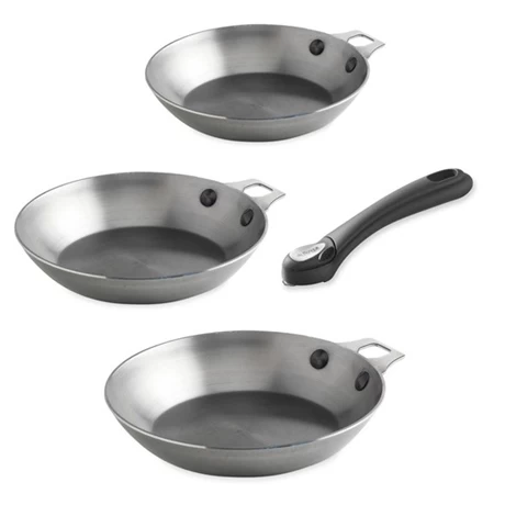 Le lot de 3 poêles et un manche permet d’équiper votre cuisine avec des ustensiles de haute qualité ! Les poêles se rangent facilement car elles n’ont pas de manche ! Le manche est fourni dans le lot pour plus de praticité.