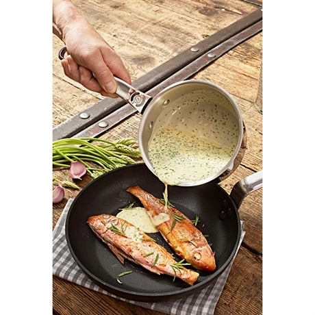 Avec cette Poêle de 28 cm de diamètre cuisinez sans colorer vos poissons, légumes, céréales…