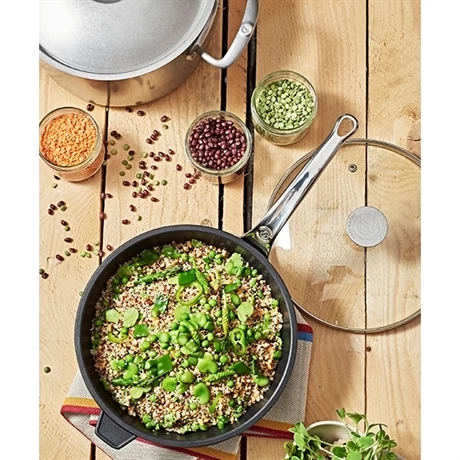 Pour une glissance optimale et une cuisson saine avec le moins de matières grasses possible, la sauteuse Choc Extrême 24 cm De Buyer est équipée d’un revêtement antiadhérent haute qualité. Et pour pallier le problème courant des ustensiles à revêtements qui s’abîment et rendent votre matériel obsolète, celui-ci a été renforcé et conçu pour une grande résistance aux chocs, à l’abrasion et aux frottements.