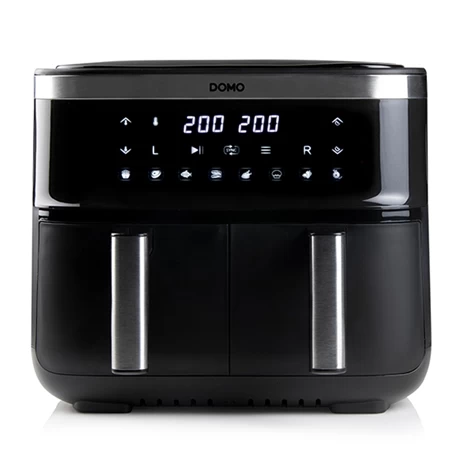 Elle s’utilise pour cuire vos frites, croquettes et aliments panés mais aussi cuire de la viande, un cake ou une quiche et remplacer votre four. Vous pouvez également l’utiliser pour réchauffer vos aliments. Avec sa belle capacité de 2 x 4 L et ses 8 programmes automatiques, la friteuse à air chaud Domo est pratique. Ses 2 cuves à frire sont équipées de plaques grill antiadhésives. Vous n’avez pas de transfert de goût ou d’odeur et pouvez régler séparément les 2 cuves.