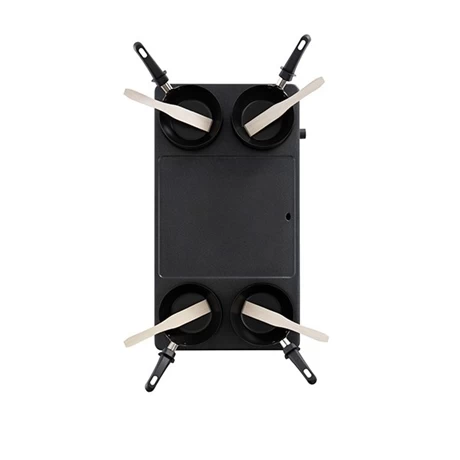 Craquez pour le Gourmet-Set 3 en 1, un appareil multifonctions utilisable durant toute l’année puisque celui-ci va vous permettre de pouvoir préparer de délicieux woks individuels grâce aux 4 poêlons wok inclus, tout comme de bonnes crêpes en plein hiver grâce à 4 emplacements mini-crêpes ou pancakes. Adapté pour 4 personnes, vous utiliserez cet appareil d’une puissance de 1000 W de façon très régulière grâce à la grande variété de possibilité qu’il propose. Très simple à utiliser, il vous suffira de suivre les témoins lumineux du thermostat lors de votre première utilisation. Robuste, votre appareil dispose d’un revêtement antiadhésif de haute qualité pour des poêlons qui résistent au temps et s’avéreront très facile à nettoyer.