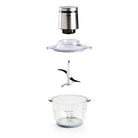 Le maxi hachoir Domo dispose d’un bol en verre gradué et de deux anses pour une utilisation facile et pratique. Sa grande capacité de 1,4 L vous permet de réaliser des préparations au format familial. Facile à utiliser d’une seule main avec son bouton “one touch“, vous contrôlez précisément sa mise en route par simple pression sur un seul bouton. Il est doté d’une base antidérapante assurant une parfaite stabilité pendant son utilisation.