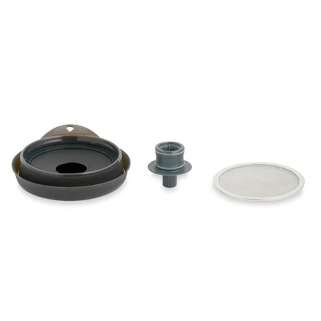 L’entonnoir est en silicone, la base et le bouchon sont en nylon et la grille en inox. Il passe au lave-vaisselle.
