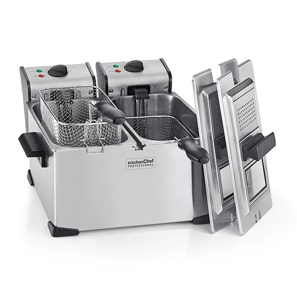 Sécurisé, un thermofusible de sécurité ré-enclenchable vous garantit une utilisation en toute sécurité. Grâce aux couvercles en inox avec vitres transparentes, vous pourrez surveiller et contrôler vos cuissons. Un filtre permanent en inox est inclus pour chacun des bacs de cette friteuse, pour une utilisation à l’infini ! Filtres en prime compatibles au lave-vaisselle. Entièrement démontable, vous la nettoierez facilement. Réglable, son thermostat varie jusqu’à 190°C pour des températures maîtrisées.