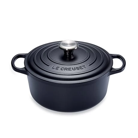 Cette Cocotte fonte ronde noir 24 cm Le Creuset est conçue en fonte émaillée pour une cuisson traditionnelle. Idéale pour cuisiner pour de nombreux convives, elle permet aussi de faire mijoter les viandes.