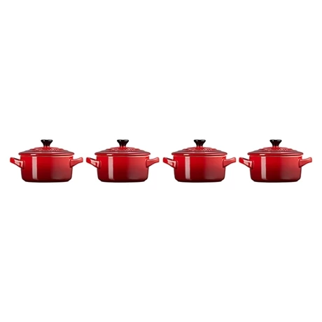 Iconique, ce set 4 mini-cocottes céramique 10 cm Cerise complète à merveille une collection de cocottes de différentes tailles signée Le Creuset. Fabriqués à partir de matériaux haut de gamme, ces ustensiles s’utilisent au quotidien pendant des années. Ce set est garanti 10 ans.