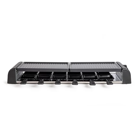 L’appareil à raclette 12 personnes est parfait pour faire des raclettes pour une grande tablée ! Sur les plateaux supérieurs, vous pourrez faire griller de la viande ou des légumes pour accompagner les pommes de terre et le fromage, qui pourra fondre lui, dans les caquelons dans la partie du bas. Les plateaux sont amovibles et antiadhérents pour les nettoyer facilement. Le thermostat ajustable permet de régler la température et contrôler vos grillades.