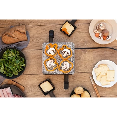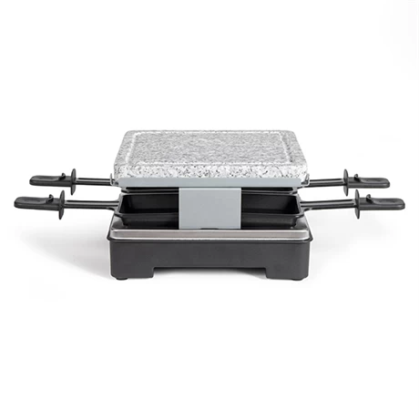 L’appareil à raclette 4 personnes LIVOO prodigue un moment de partage avec la préparation simultanée de vos raclettes et du gril. Il s’assigne à des repas réussis avec sa pierre à gril de 20cm par 20cm qui garantit une cuisson parfaite des aliments. Avec son plateau en granit amovible et ses 4 caquelons à revêtement antiadhésif, il est très facile à nettoyer et à ranger. L’appareil présente un interrupteur ON/OFF, ainsi que des pieds antidérapants pour assurer votre sécurité.