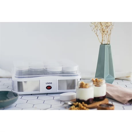 La yaourtière contient 12 pots de yaourt en verre de 0,21 L avec couvercle à visser pour les fermer hermétiquement. Le bac central avec égouttoir vous permettra de faire du fromage blanc avec une capacité de 1,2 L. L’appareil fonctionne simplement avec un interrupteur marche arrêt.