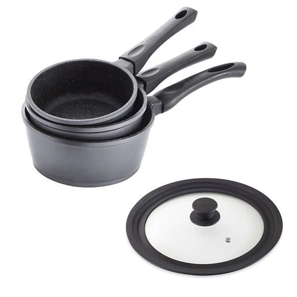Lot 3 Casseroles Dur Comme La Pierre 16,18 Et 20 Cm Et Couvercle Multi-diamètres