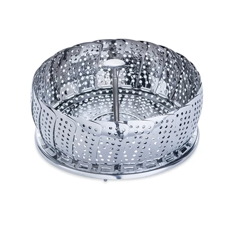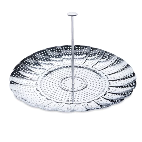 Pratique, la tige centrale télescopique permet d’insérer et retirer le panier vapeur de la casserole, avec un gant ou manique pour éviter les brûlures.