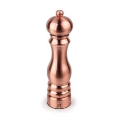 Fabriqué en France, le moulin à sel Paris Chef cuivré Peugeot est la déclinaison cuivre du célèbre moulin à sel Inox Paris chef. L’alliance de sa silhouette classique connue de tous et de son habillage en inox brossé recouvert d’une couche de cuivre en fait un objet d’exception, très décoratif avec son gabarit de 22 cm qui lui assure une belle présence.
