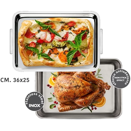 Matériau de qualité caractérisé par sa longue durée de vie et sa résistance à la corrosion, aux rayures et aux chocs, l’inox garantit une sécurité hygiénique maximum et ne dégage aucune substance nocive. La belle taille du plat à four inox Duplex en fait le plat parfait pour régaler toute la famille de gratins, de viandes ou de poissons moelleux, de légumes savoureux.et de recettes diététiques. Ce plat convient à toutes les sources de chaleur y compris l’induction.