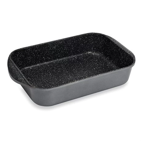 Ce plat à four fait partie de la gamme Dur comme la pierre composée de casseroles, poêles antiadhérentes, sauteuses antiadhérentes avec couvercle, poêle à poisson, cocottes, crêpière, wok et faitouts.