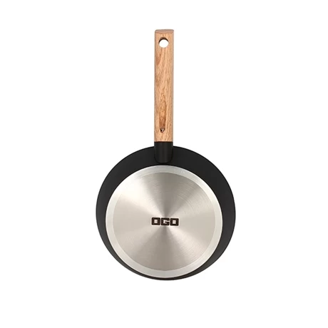 Dotée d’un manche en chêne massif aux finitions brutes et droites, afin de protéger les mains de la chaleur et des éventuelles projections, cette poêle Ector induction aluminium revêtu 20 cm OGO fait partie d’une gamme d’ustensiles robustes et esthétiques.