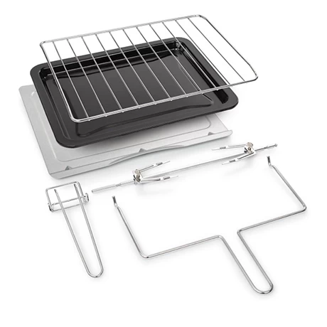 Cuisez tout type d’aliments avec le four à convection 32 L Tristar. Grâce à sa porte vitrée, surveillez la cuisson de vos préparations sans ouvrir la porte. L’entretien vous sera facilité avec les parois autonettoyantes du four. Il est fourni avec tous ses accessoires : lèchefrite, grille, plateau avec poignées et une rôtisserie pour concocter de délicieux poulets rôtis.