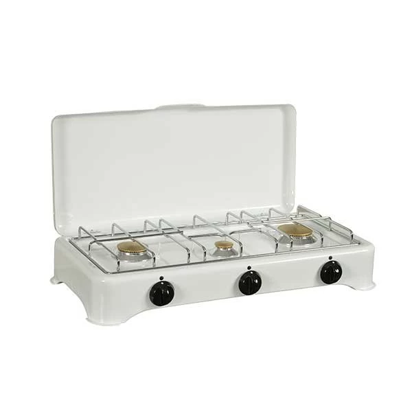 Ce réchaud à gaz 3 brûleurs émaillé blanc est idéal pour faire des bons plats, en extérieur ! Grâce à ses 3 brûleurs vous pourrez même faire chauffer 3 récipients simultanément et cuisiner en grande quantité ! La grille est en acier chromé, les brûleurs en alliage Pyral N2 et les chapeaux du brûleur en laiton massif, très résistants et durables. Vous l’utiliserez facilement grâce à ses molettes de mise en route. Le couvercle protège les brûleurs de la poussière et des chocs quand vous ne l’utilisez pas !