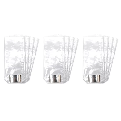 Ces sachets en plastique transparent recyclables sont vendus à plat et prêts à l’emploi. Vous n’avez qu’à placer le fond en carton argenté intégré pour avoir un fond plat et remplir le sachet de confiseries.