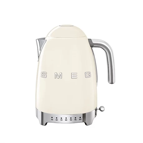 La bouilloire électrique de couleur crème proposée par Smeg dispose d’une capacité de 1,7 L pour vous permettre de préparer environ 7 tasses de votre thé favori. Robuste, elle se compose d’une structure en acier inoxydable verni d’un design style années 50, ainsi que de diverses parties chromées modernes. Pour toujours prévoir la bonne quantité de thé, vous pourrez visualiser en litre ou en tasse votre niveau d’eau, rien de plus pratique !