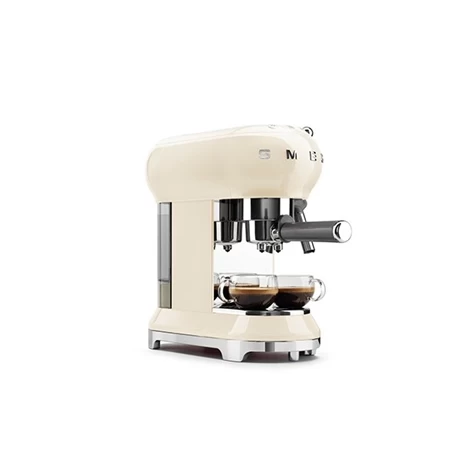 La machine à café expresso de couleur crème proposée par Smeg va permettre aux grands amateurs de café de déguster celui-ci à sa juste valeur ! Robuste, cette machine dispose d’un boitier en métal, d’un porte-filtre, d’un cadre et d’un support de tasses fabriqués en acier inoxydable avec base chromée moderne. Performante, un système de chauffe Thermo bloc avec pression professionnelle de 15 bars a été ajouté à cette machine de qualité.
