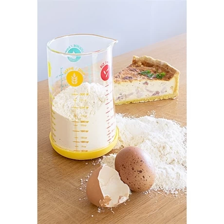 Le verre mesureur avec base en silicone 500 ml est une aide précieuse lors de la préparation de plats et gâteaux. Ce verre mesure les liquides grâce à 4 graduations: ml, cl, dl et L pour s’adapter à toutes les recettes.